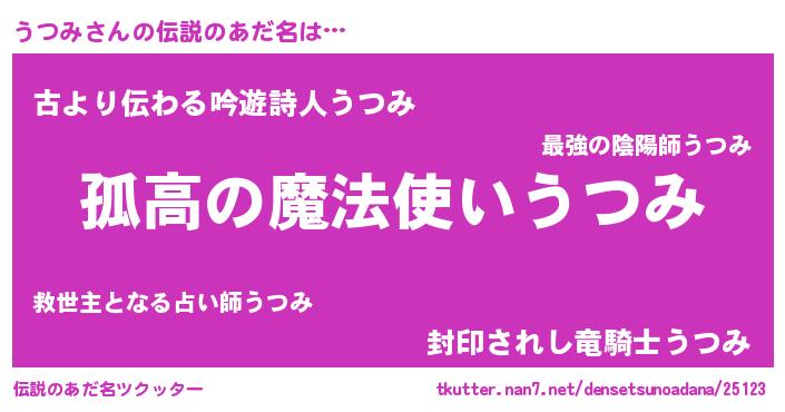 | 胡散臭い通販商品みたいなあだ名 | 『信頼と実績のサプリメント…その名も「うつみ」』 |