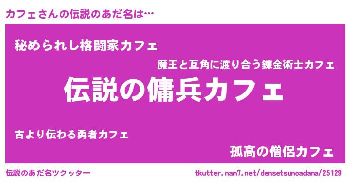 | ヒーロー風カッコイイあだ名 | 『スーパーカフェ』『超時空戦士カフェ』 |