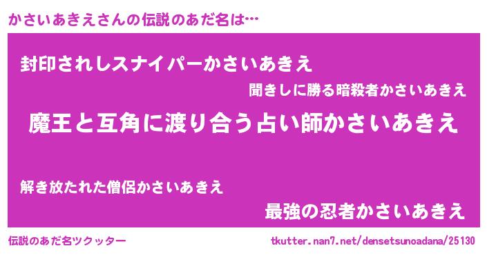 | 女子向けラノベタイトル風あだ名 | 『かさいあきえ恋絵巻』 |