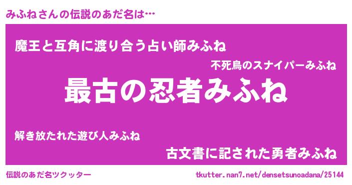 | ポケモン風あだ名 | 『ミフネダネ』『ミフキング』 |