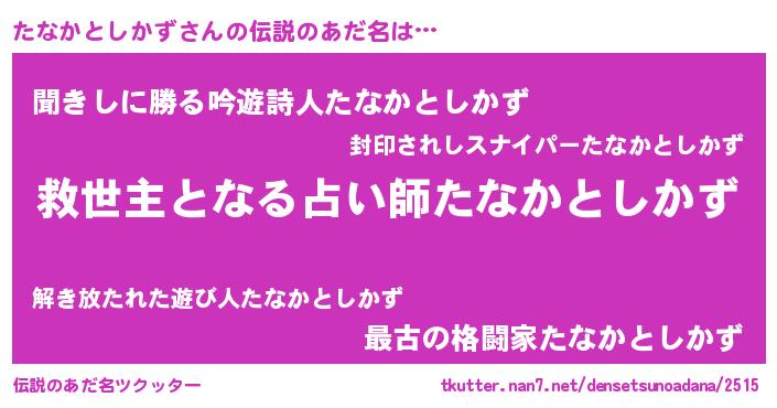 | 意味不明あだ名 | 『住所不定無職たなかとしかず(39歳)』 |