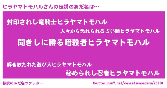 | 意味不明あだ名 | 『永久保存ヒラヤマトモハル』 |