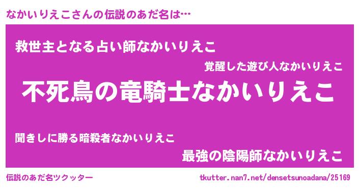 | 女子向けラノベタイトル風あだ名 | 『なかいりえこ姫と円卓の騎士』 |