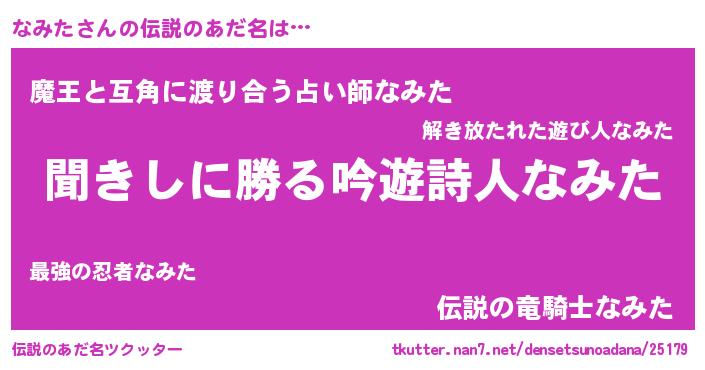 | ヒーロー風カッコイイあだ名 | 『ネオナミタ』『慈愛の使者なみた』 |