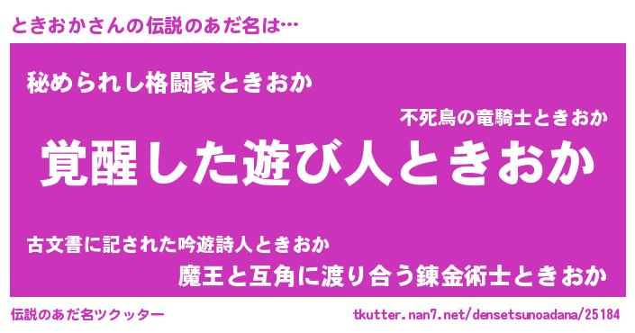 | 女子向けラノベタイトル風あだ名 | 『ときおか様がみてる』 |