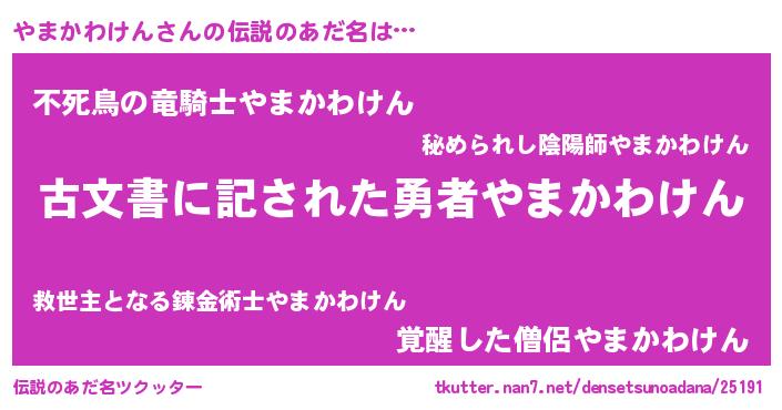 | ヘコむあだ名 | 『やまかわけん(震え声)』『やまにゅー』 |