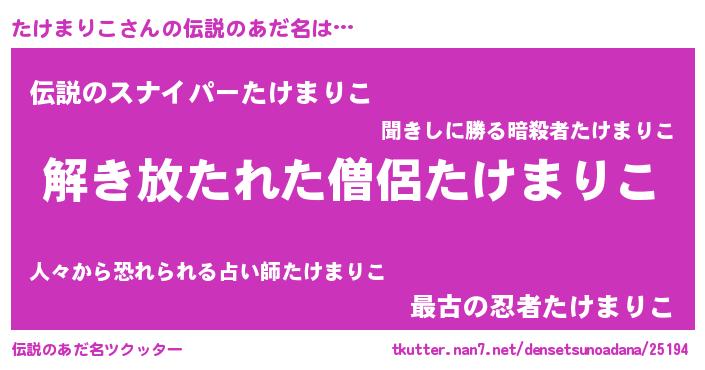 | ポケモン風あだ名 | 『タケゴンZ』『ヒタケマリコ』 |