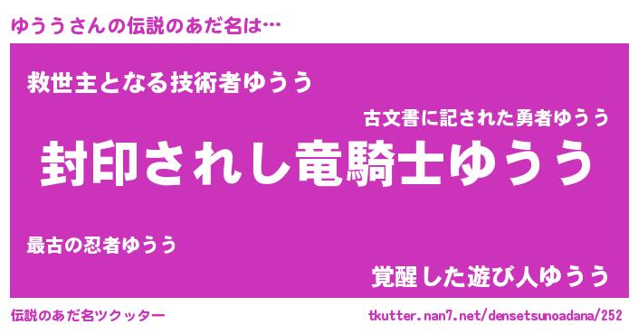 | ヒーロー風カッコイイあだ名 | 『最強戦士ユウウ』『スーパーユウウ』 |