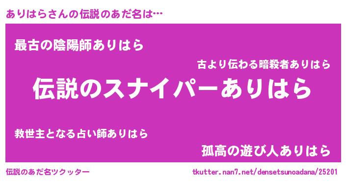 | 胡散臭い通販商品みたいなあだ名 | 『必ず成功する霊験あらたかなお札…その名も「ありはら」』 |