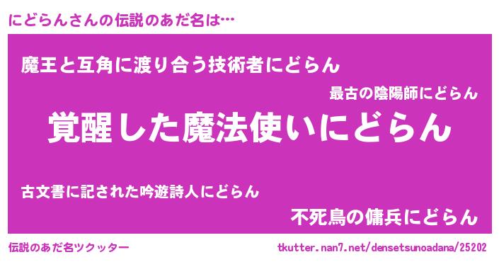 | 意味不明あだ名 | 『とにかく怪しいにどらん』 |
