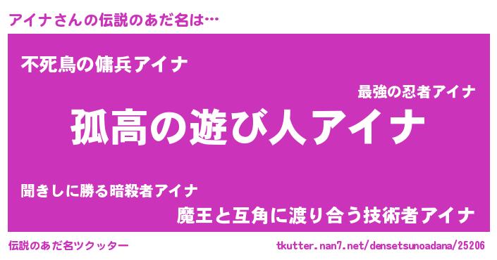 | 女子向けラノベタイトル風あだ名 | 『アイナは平凡を望む』 |