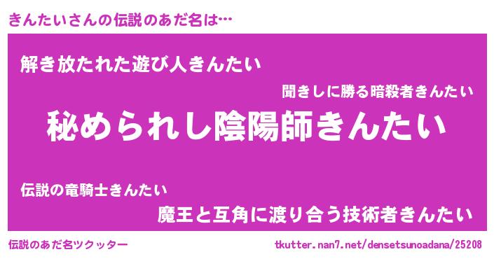 | 女子向けラノベタイトル風あだ名 | 『きんたいが死なない童話 林檎のきんたいの診療簿』 |