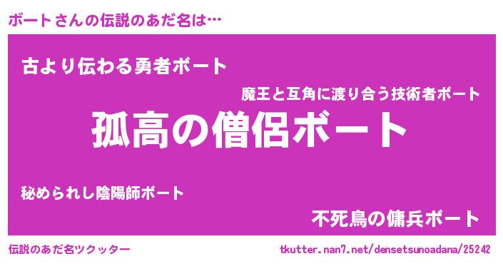 | 女子向けラノベタイトル風あだ名 | 『首の姫と首なしボート』『闇のボート』 |