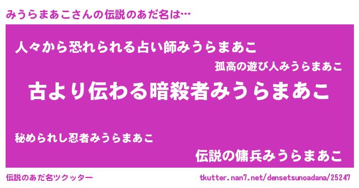 | 意味不明あだ名 | 『永久保存みうらまあこ』 |