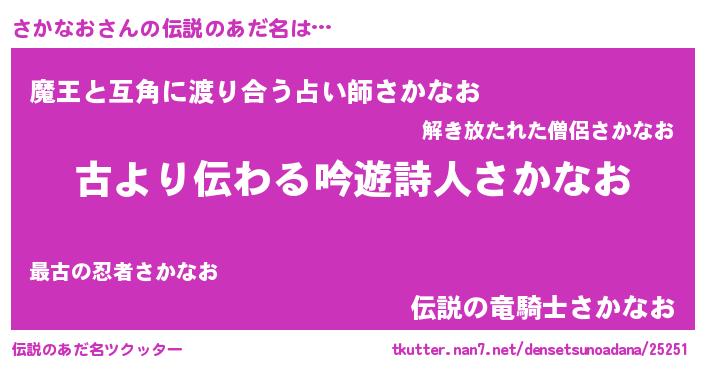 | ヘコむあだ名 | 『さかなお(小並感)』『さかもー』 |