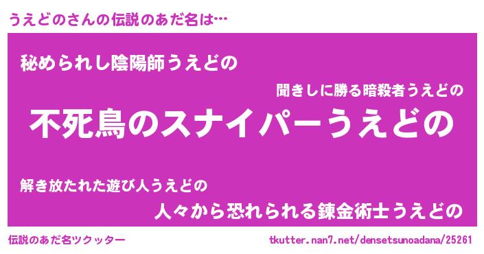 | 女子向けラノベタイトル風あだ名 | 『うえどの姫と円卓の騎士』 |