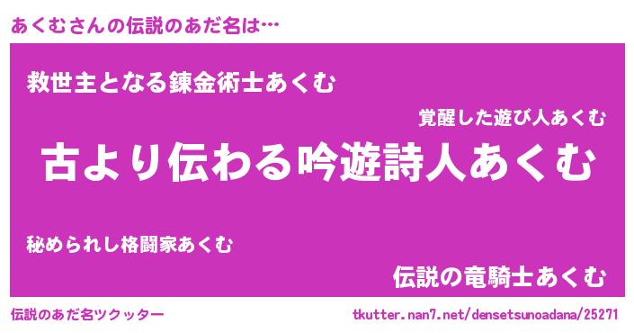 | 意味不明あだ名 | 『自称あくむ』『永久保存あくむ』 |