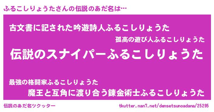 | 意味不明あだ名 | 『自称ふるこしりょうた』 |