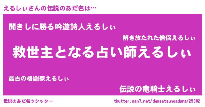 | ヒーロー風カッコイイあだ名 | 『慈愛の使者えるしぃ』『ネオエルシィ』 |