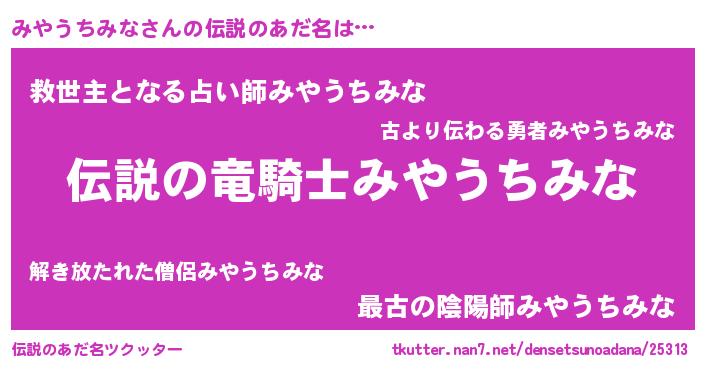 | 恥ずかしいあだ名 | 『プリティーみやうちみな』『みやっちょ』 |