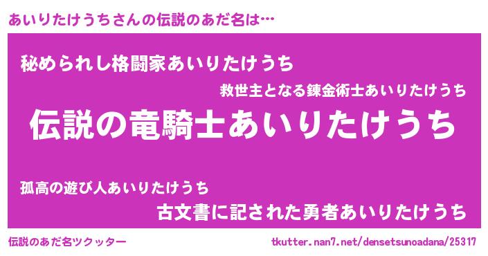 | ヒーロー風カッコイイあだ名 | 『スーパーアイリタケウチ』 |