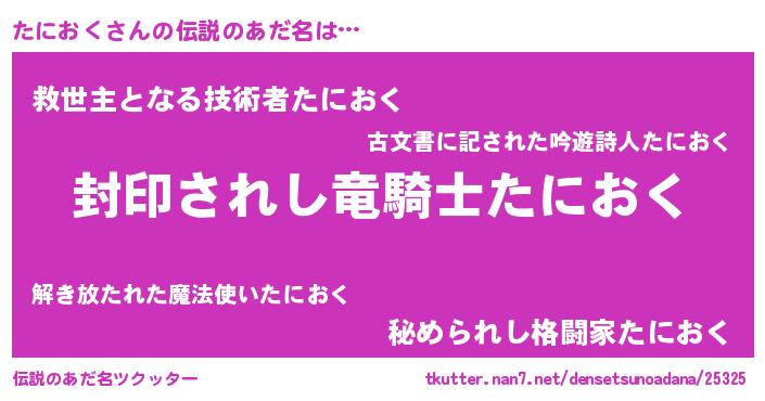 | 胡散臭い通販商品みたいなあだ名 | 『億万長者になれるブレスレット…その名も「たにおく」』 |