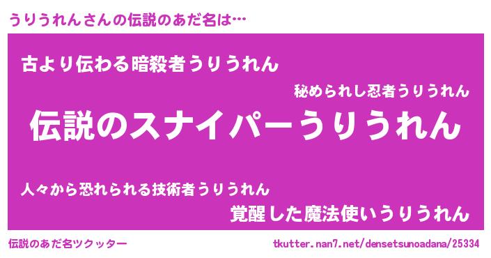 | ファンタジー風あだ名 | 『ウリフェル』『ウリディッシュ』 |