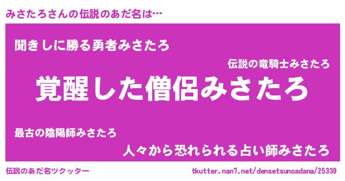 | 男性向けラノベタイトル風あだ名 | 『みさたろの嫁は女の子じゃないと思った?』 |