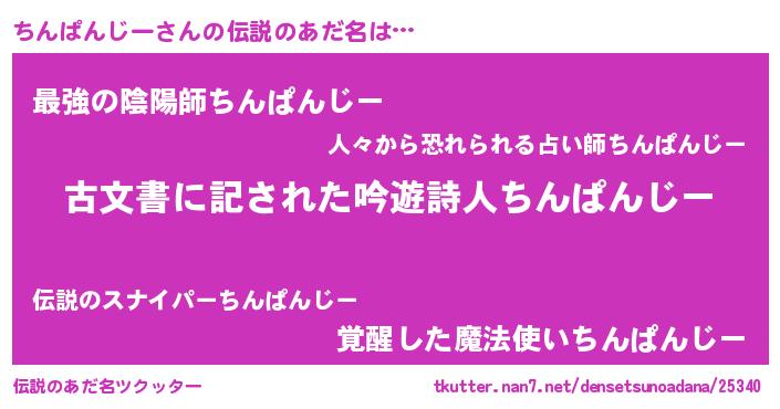 | ヘコむあだ名 | 『ちんぱんじー(笑)』『酢こんぶ』 |