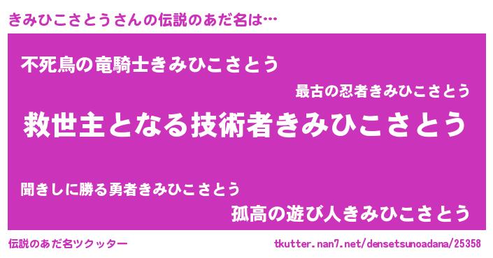 | ヒーロー風カッコイイあだ名 | 『慈愛の使者きみひこさとう』 |