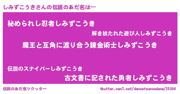 | 女子向けラノベタイトル風あだ名 | 『しみずこうき恋絵巻』 |