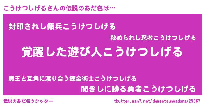 | 男性向けラノベタイトル風あだ名 | 『Re:こうけつしげるから始める異世界生活』 |