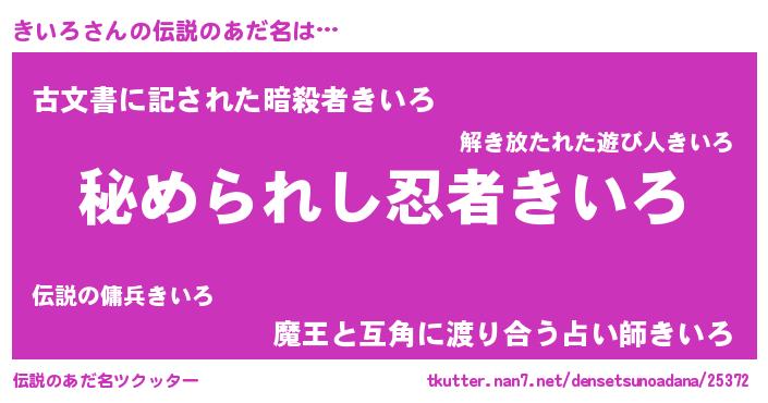 | ファンタジー風あだ名 | 『エターナルキイロー』『ゼキイトゥ』 |