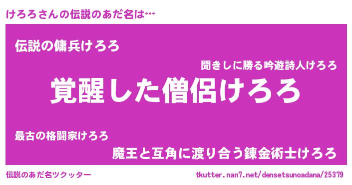 | 意味不明あだ名 | 『とにかく怪しいけろろ』 |