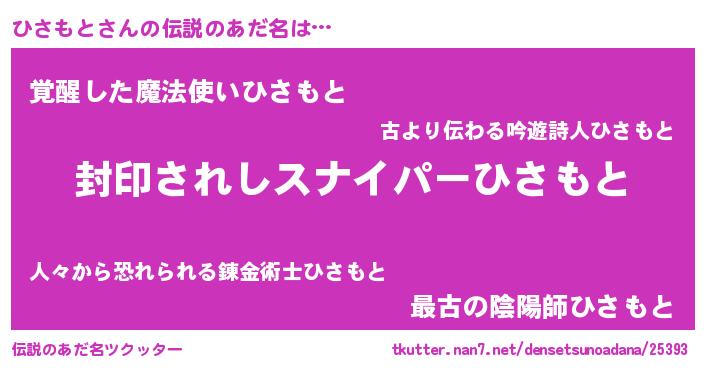 | ヒーロー風カッコイイあだ名 | 『スーパーヒサモト』『天弓騎士ヒサ』 |