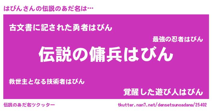 | ヘコむあだ名 | 『はびにゅー』『はびん(苦笑)』 |