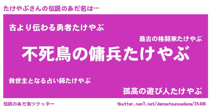 | 意味不明あだ名 | 『ペロリンたけやぶ』『永久保存たけやぶ』 |