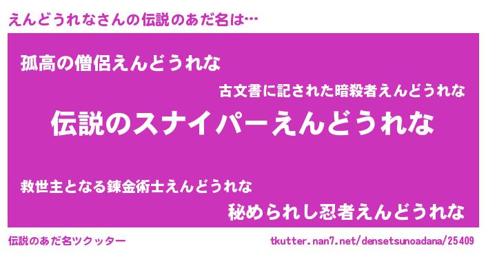 | ヒーロー風カッコイイあだ名 | 『スーパーエンドウレナ』『暗黒騎士エン』 |