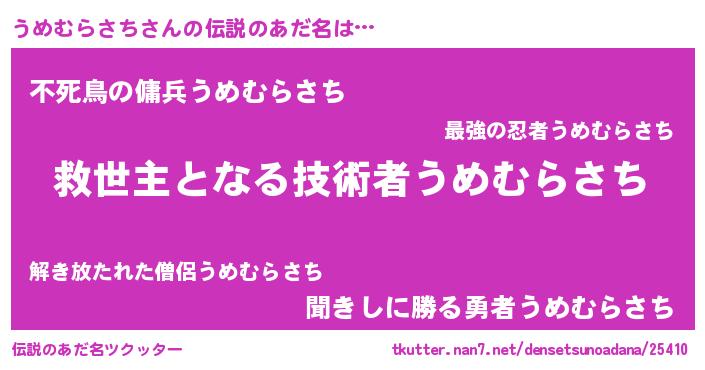 | ヒーロー風カッコイイあだ名 | 『天空の使者うめむらさち』 |