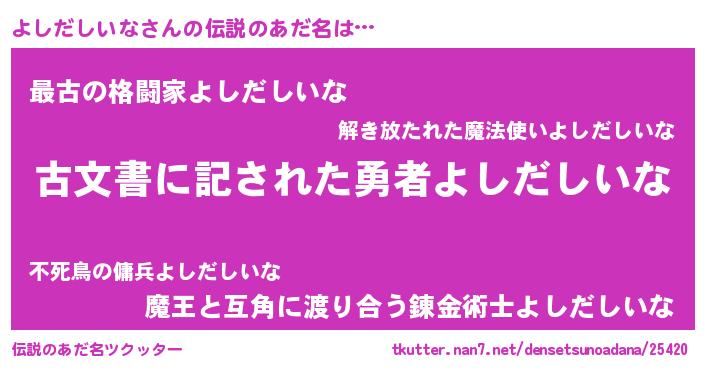 | ファンタジー風あだ名 | 『ヨシディッシュ』『ゼヨシトゥ』 |