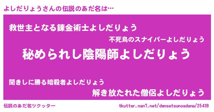 | ファンタジー風あだ名 | 『エターナルヨシダリョウー』 |