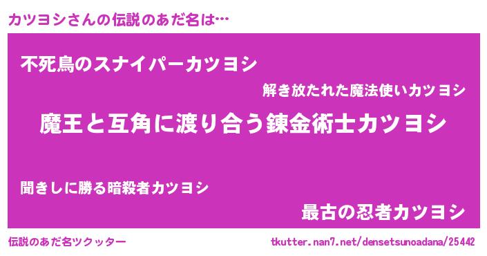 | ヒーロー風カッコイイあだ名 | 『友情の使者カツヨシ』『仮面カツダー』 |