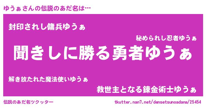 | ヘコむあだ名 | 『ゆうぁ(遠い目)』『ゆうにゅー』 |