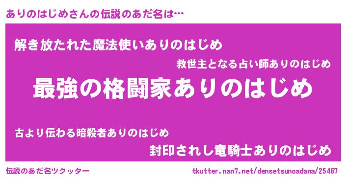 | ヒーロー風カッコイイあだ名 | 『ウルトラありのはじめマン』 |