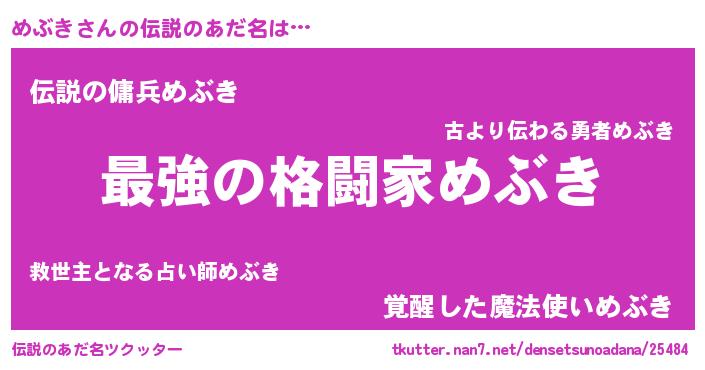 | ファンタジー風あだ名 | 『エターナルメブキー』『カークメブラー』 |