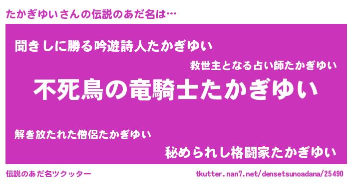 | 男性向けラノベタイトル風あだ名 | 『タカギユイアートオンライン』 |