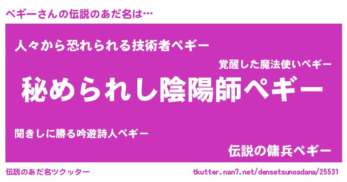 | ヘコむあだ名 | 『牛乳』『ペギもー』『ペギを』 |