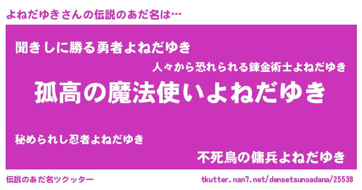 | ヘコむあだ名 | 『よねお』『よねだゆき(苦笑)』 |