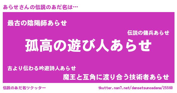 | 胡散臭い通販商品みたいなあだ名 | 『信頼と実績のペンダント…その名も「あらせ」』 |
