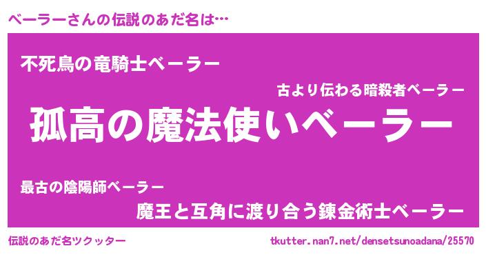 | ヒーロー風カッコイイあだ名 | 『ウルトラ戦士ベーラー』『幻影騎士ベー』 |